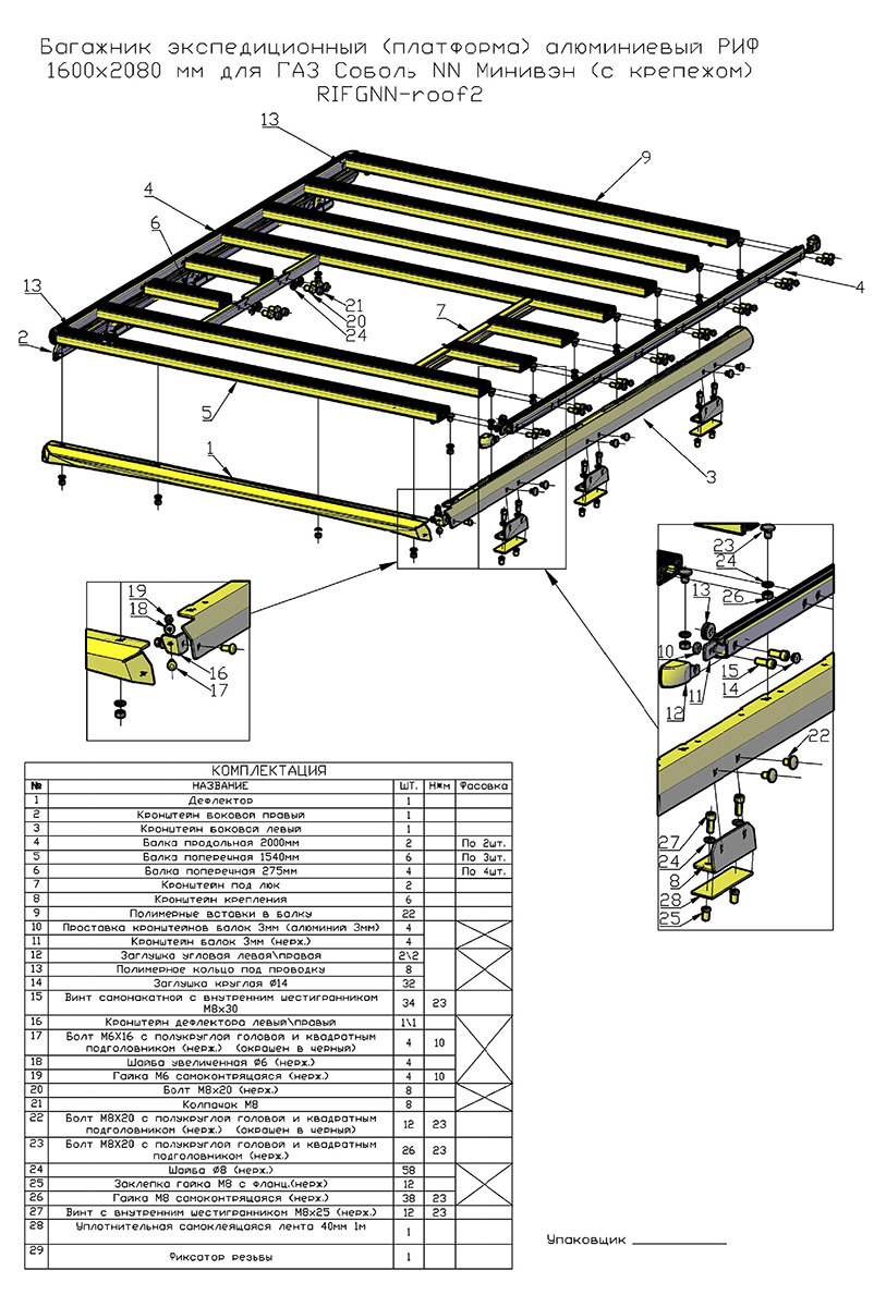 Багажник экспедиционный (платформа) алюминиевый РИФ 1600x2080 мм для ГАЗ Соболь NN Минивэн (с крепежом): описание, фото, видео, характеристики, условия доставки и покупки оптом и в розницу, отзывы покупателей. Большой каталог Багажники на крышу на официальном сайте интернет-магазина для внедорожников Автовентури