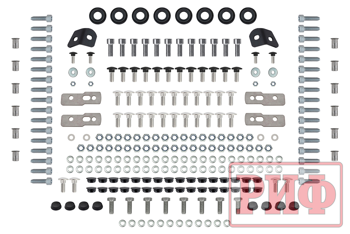 Весь крепеж, который используется в конструкции багажника, в том числе для его сборки и установки, выполнен из высококачественной нержавеющей стали, т.е. со временем не будет никаких ржавых потеков и болты «не закиснут». В случае необходимости, крепеж можно докупить как у нас, так и в любом магазине, продающем крепежные изделия. Багажник поставляется в картонной упаковке с крепежом и подходит только под конкретную модель автомобиля.
