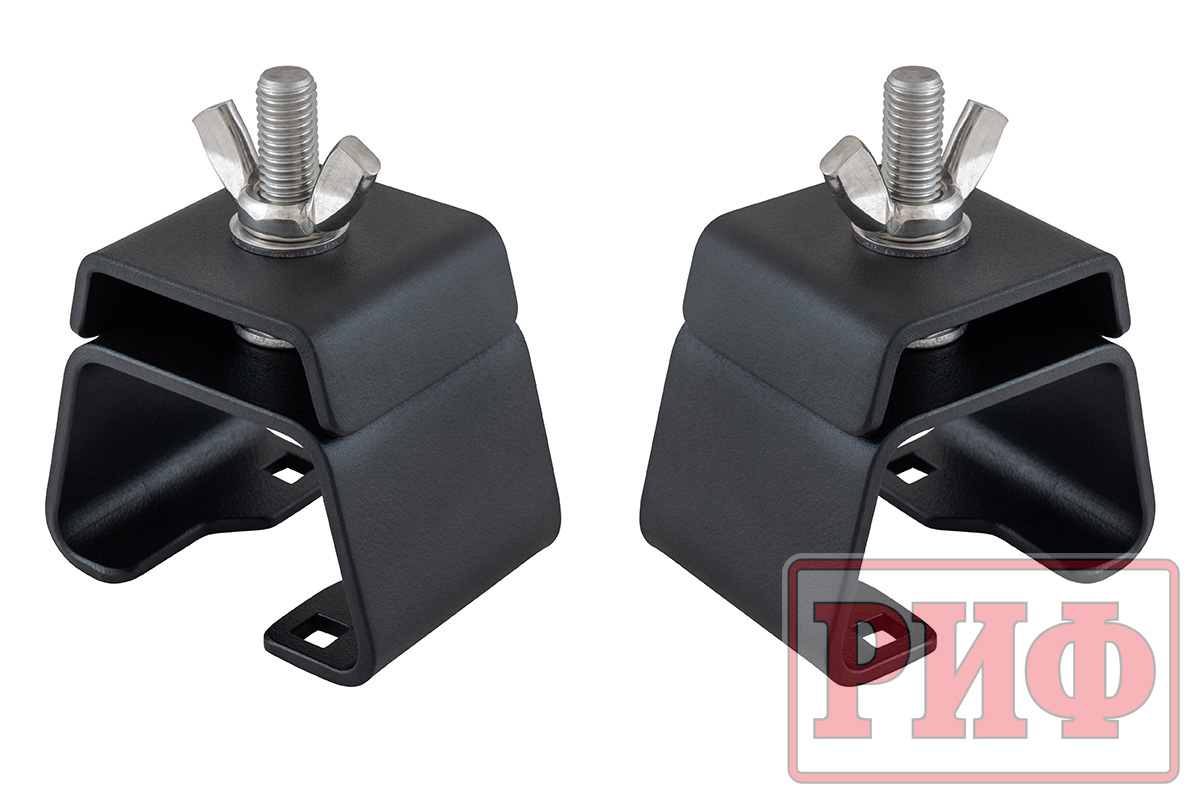 Кронштейны для верхнего крепления домкрата Hi-Jack к алюминиевому багажнику (платформе) РИФ: описание, фото, видео, характеристики, условия доставки и покупки оптом и в розницу, отзывы покупателей. Большой каталог Комплектующие на официальном сайте интернет-магазина для внедорожников Автовентури