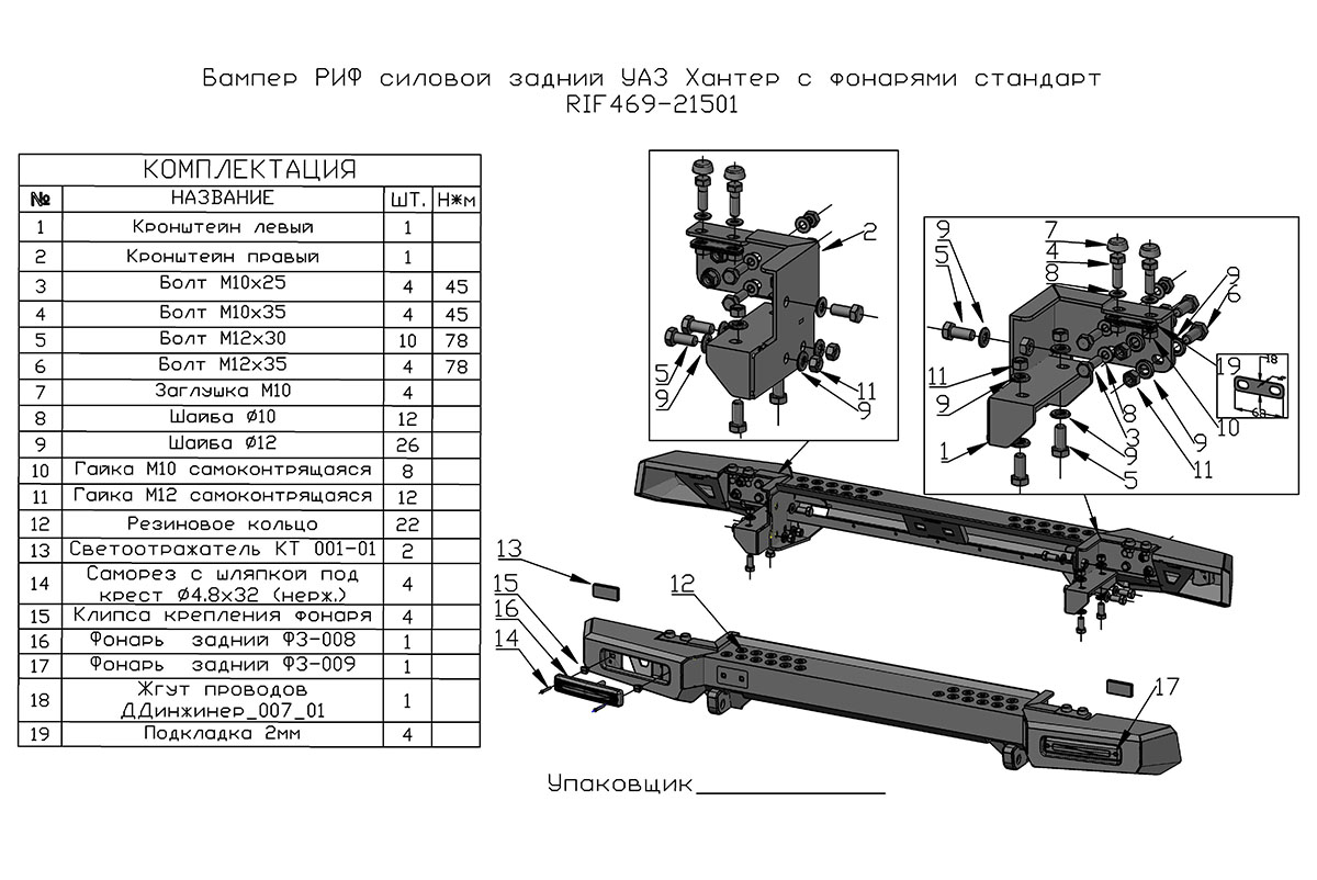 Бампер РИФ силовой задний УАЗ Хантер с фонарями, возможностью установки фаркопа, стандарт: описание, фото, видео, характеристики, условия доставки и покупки оптом и в розницу, отзывы покупателей. Большой каталог Бамперы на официальном сайте интернет-магазина для внедорожников Автовентури