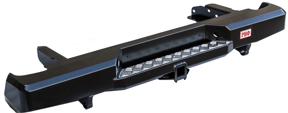 Задний силовой бампер РИФ надежно защитит кузов автомобиля на бездорожье или в городе в случае непредвиденных инцидентов. Бампер оборудован упорами под хай джек и буксирными проушинами для работы с рывковой или буксировочной стропой.