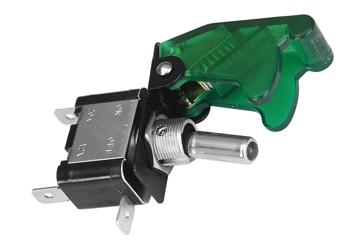 Тумблер имеет функцию подсветки. Для предотвращения произвольного переключения тумблера применяются защитные крышки, которые изготавливаются в различной цветовой гамме. Цвета крышки – зеленый.