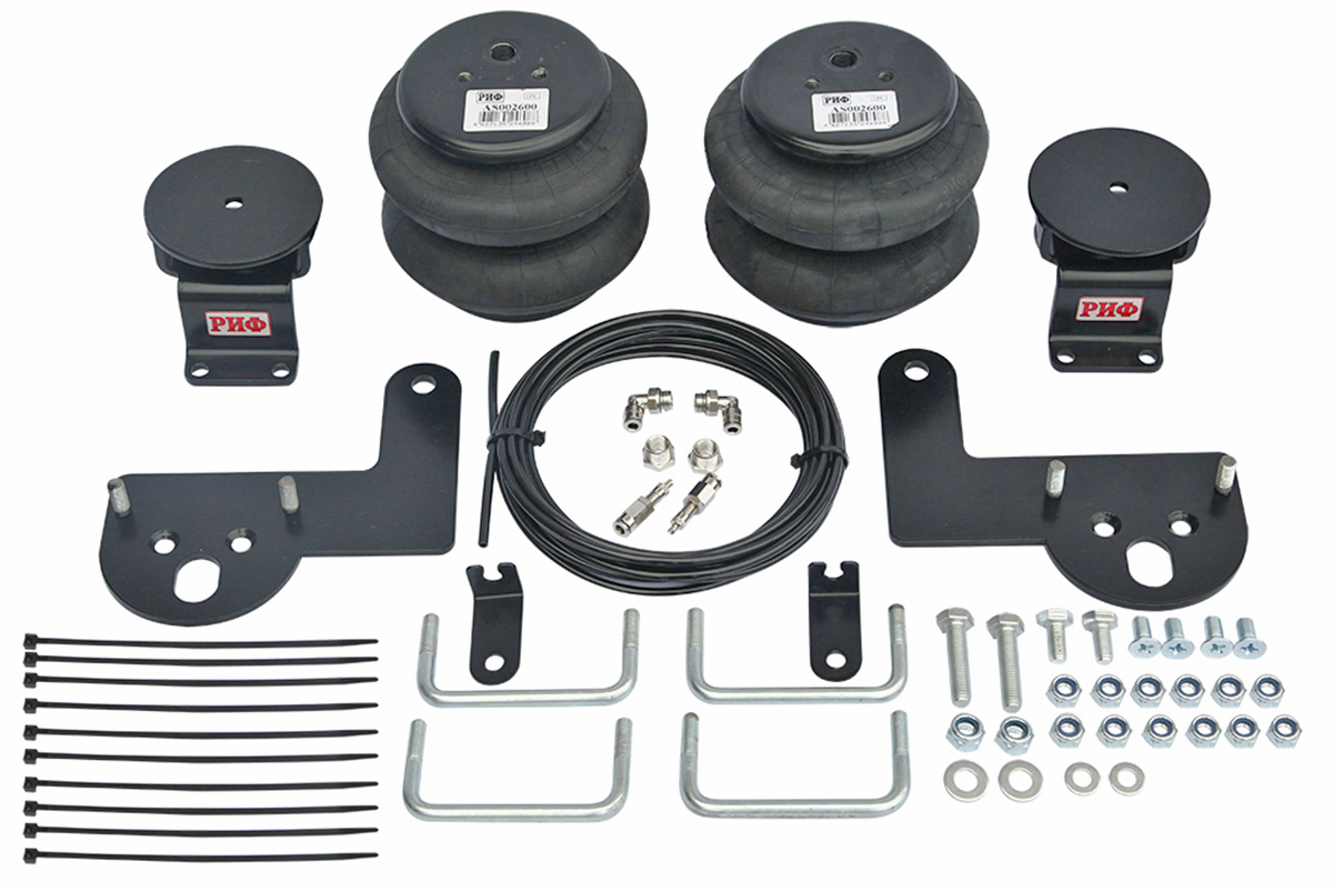 Комплект пневмоподвески РИФ устанавливается в дополнение к штатной подвеске автомобиля и позволяет снизить нагрузку на рессоры и использовать полную грузоподъёмность автомобиля без изменения геометрической проходимости.